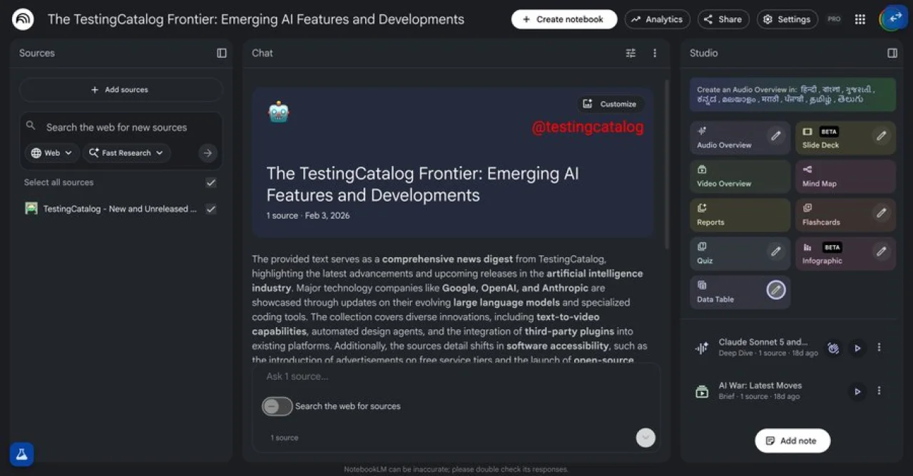 NotebookLM Arayüzü Baştan Aşağı Değişiyor