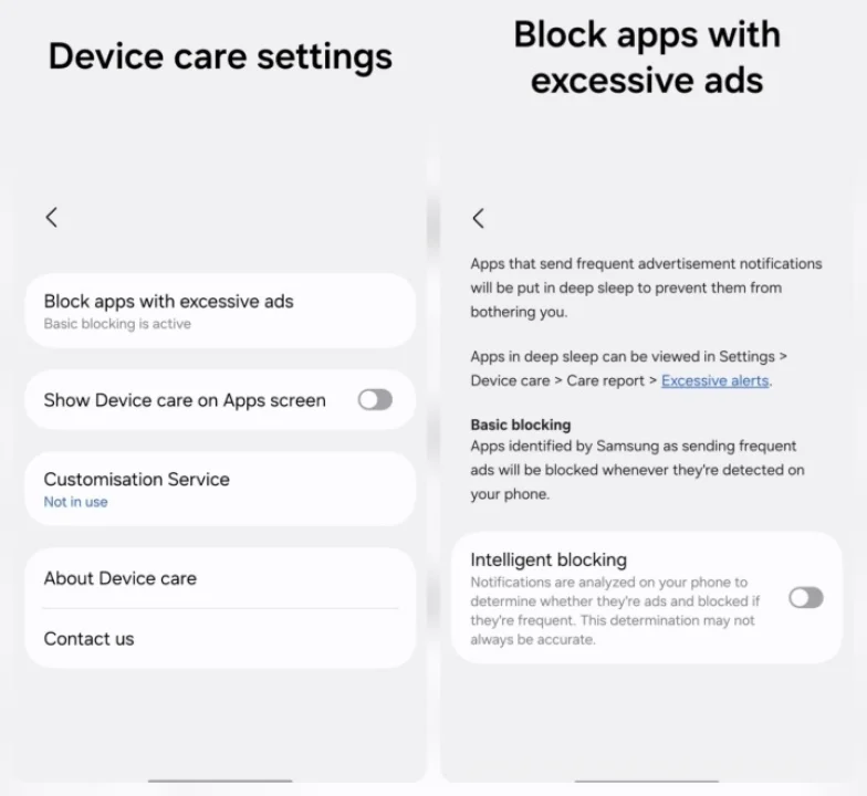 One UI 8.5 ile Cihaz Bakımı bölümüne eklenen yeni sistem, uygulamaların gönderdiği bildirimi analiz ederek aşırı reklam gönderimi tespit edilirse uygulamanın bildirimlerini otomatik olarak kapatacak. Samsung’un geliştirdiği mekanizma, bildirim spam’ini durdurmak için iki aşamalı bir modele dayanıyor: