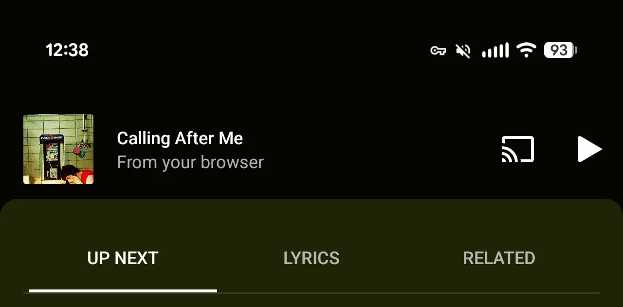 Güncelleme sonrası YouTube Music uygulaması açıldığında, mini oynatıcı bölümünde en son dinlenen şarkı otomatik olarak görüntüleniyor. Kullanıcı oynatmaya başlamadan önce, müziğin hangi cihazdan aktarıldığını belirten kısa bir bilgi notu yer alıyor. Bu detay, müzik sırasının kaynağını anlamayı kolaylaştırıyor.